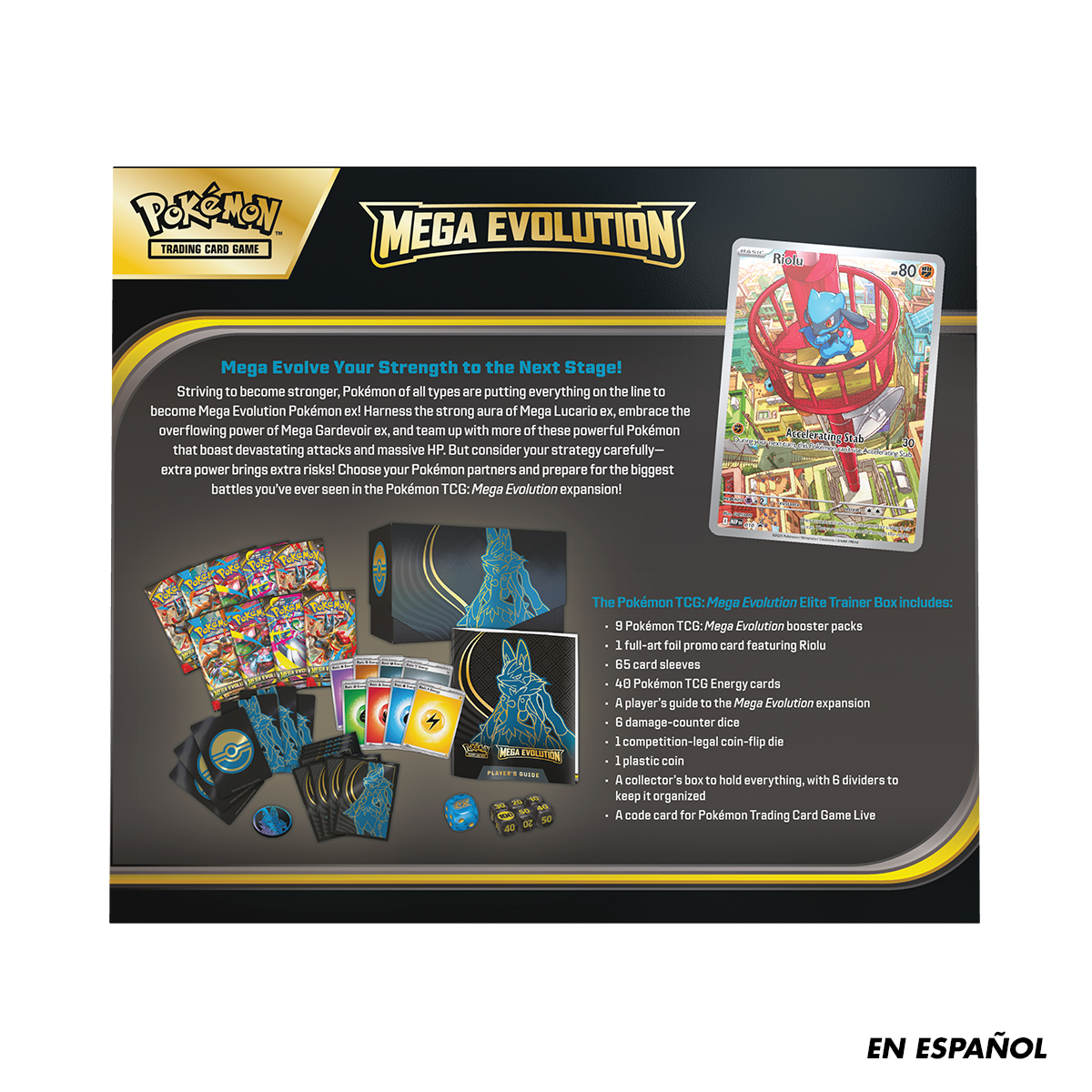 En su búsqueda por volverse más fuertes, los Pokémon de todo tipo desafían sus límites para convertirse en Pokémon ex Megaevolución. Domina el aura formidable de Mega-Lucario ex, emplea el poder imparable de Mega-Gardevoir ex y únete a otros Pokémon extraordinarios que cuentan con ataques devastadores y PS descomunales. Pero analiza bien tu estrategia, ya que entre más poder tengan, más riesgos traerán. ¡Elige a tus compañeros Pokémon y prepárate para los combates más espectaculares que jamás hayas visto con la expansión Megaevolución de JCC Pokémon!