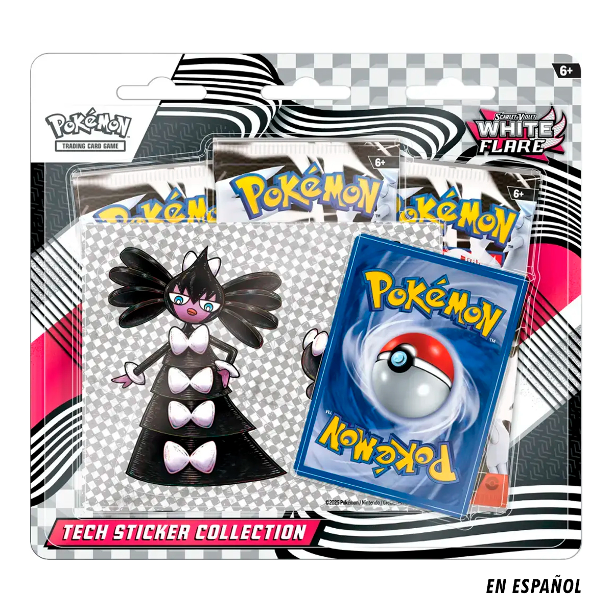 La colección de pegatinas tecnológicas Escarlata y Violeta—Llama Blanca de JCC Pokémon incluye: