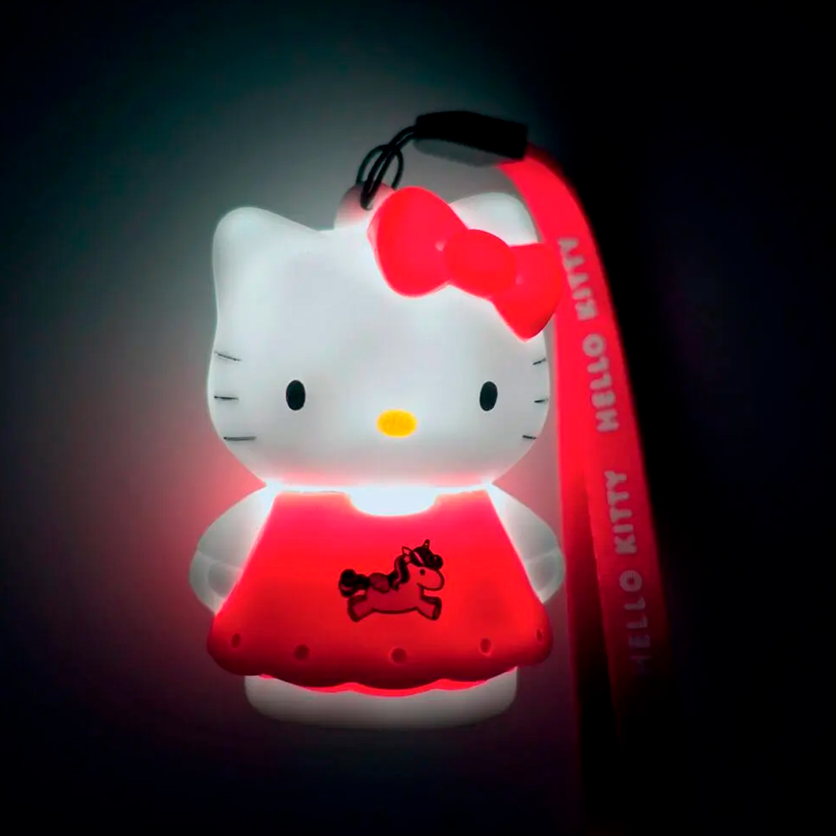 Este encantador accesorio de Hello Kitty, vestida con un adorable atuendo de unicornio, es ideal para los fans que buscan un toque de luz y fantasía. Incorpora un difusor de luz que ilumina con siete colores diferentes, ofreciendo tres funciones de iluminación: puedes elegir entre un cambio de color alternado uno por uno, un color fijo, o un desplazamiento rápido de colores, permitiéndote personalizar la atmósfera. Su diseño compacto incluye una correa a juego, perfecta para llevarla contigo a todas partes, añadiéndola a tu mochila, bolso o llaves.