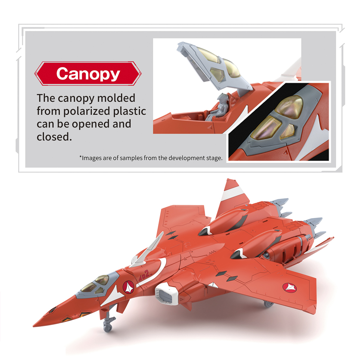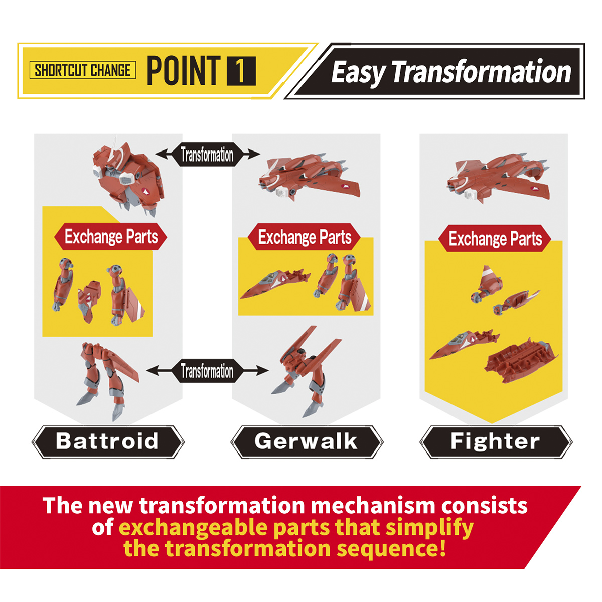 El VF-22S Sturmvogel II, pilotado por Milia Fallyna Jenius en «Macross», se une a la serie de modelos en kit «High Grade (HG)» de Bandai. Al incorporar piezas intercambiables como parte del mecanismo de transformación, la secuencia de transformación se ha simplificado; puede transformarse fácilmente en sus formas Battroid, Gerwalk y Fighter. Una transformación intercambiable de tres etapas (cambio de atajo) permite una forma precisa de cada etapa de la transformación.